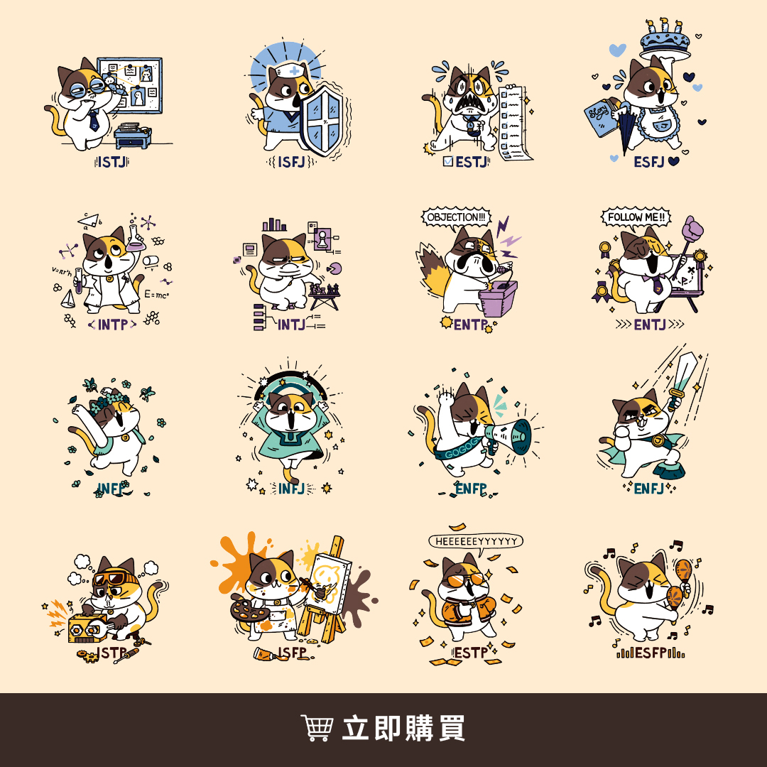 踏上「布丁貓的MBTI探險」展現你的獨特性格!以布丁貓為主題設計了16款不同的專屬圖案,