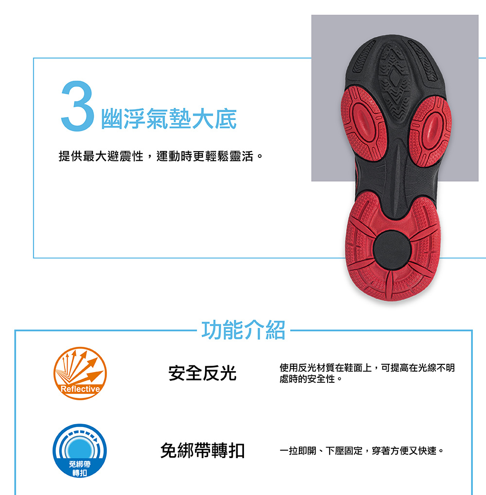 幽浮氣墊大底,提供最大避震性,運動時更輕鬆靈活