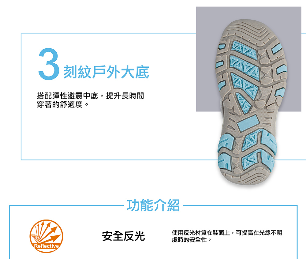 護趾設計,避免來自硬物的傷害,夜間反光材質,提升夜晚安全性
