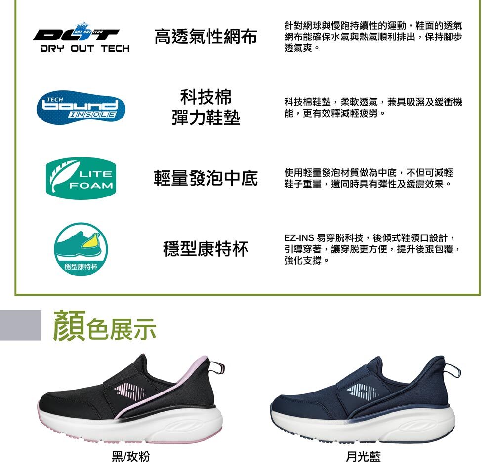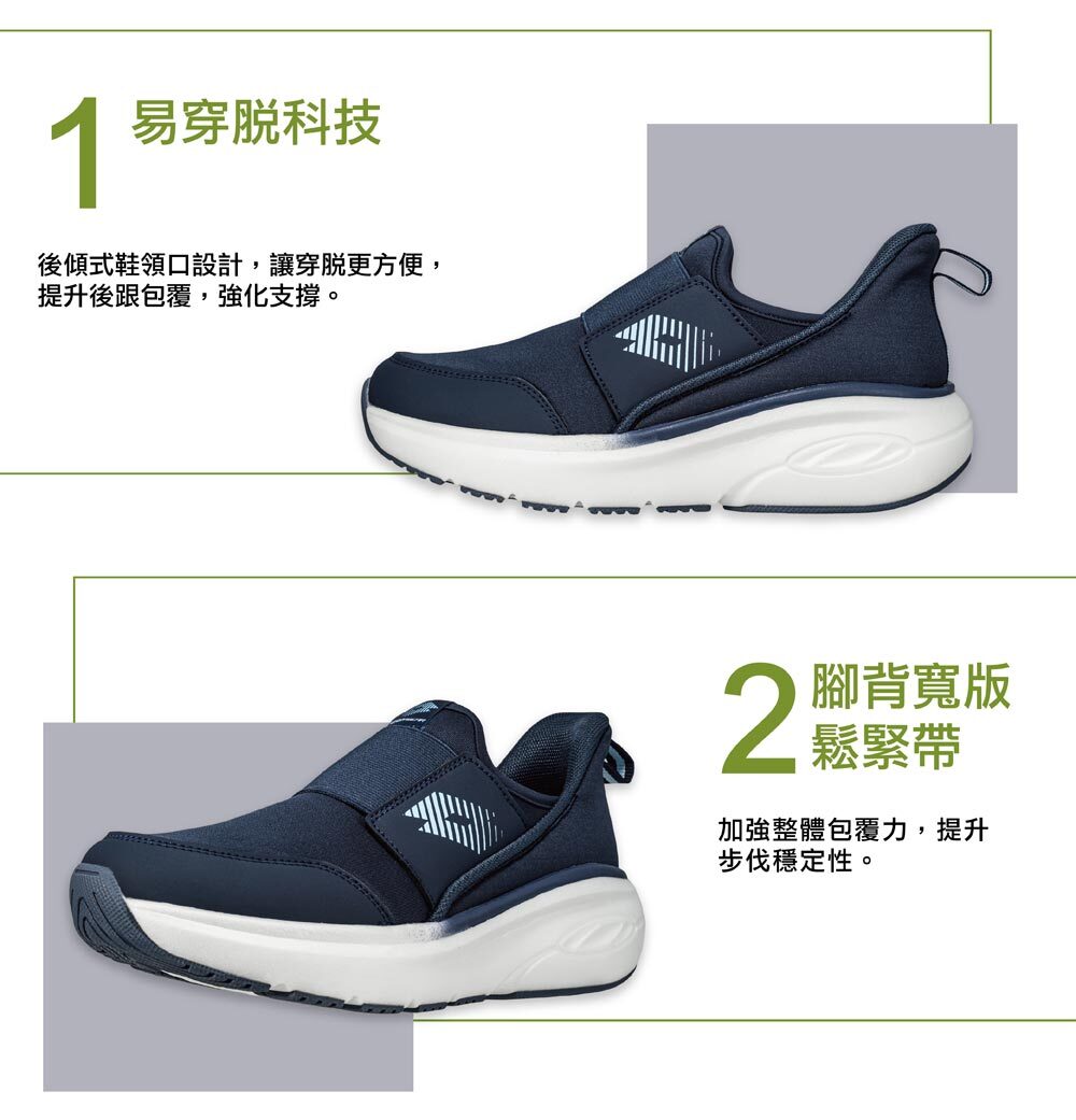 腳背寬版鬆緊帶加強整體包覆力,提升步伐穩定性