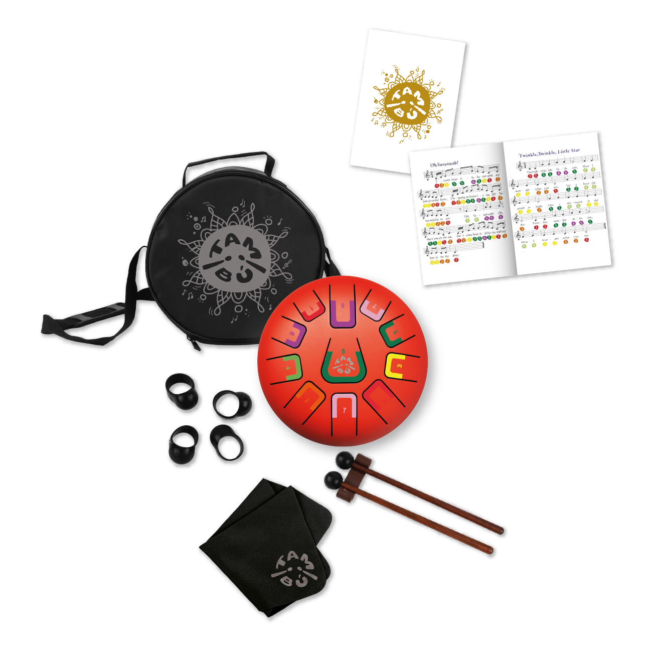 【附贈配件】樂譜書、2支鼓棒、清潔布、布料套